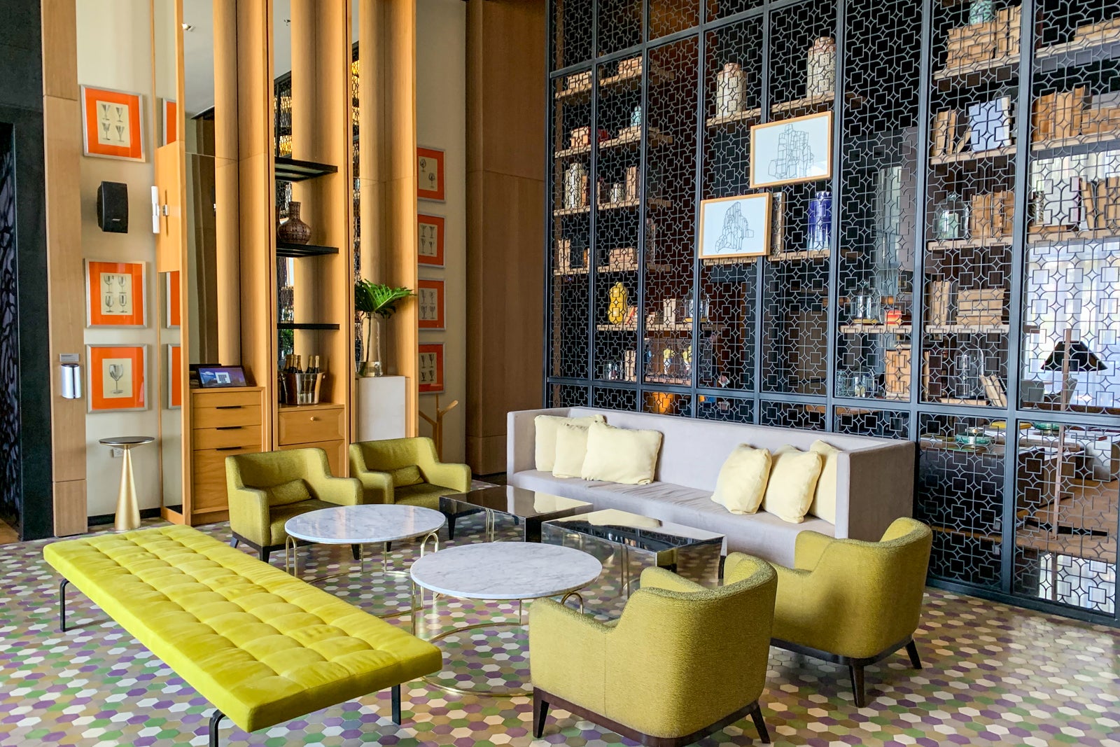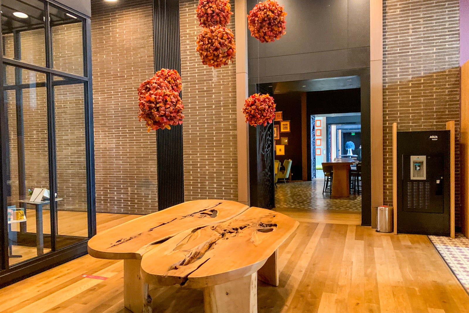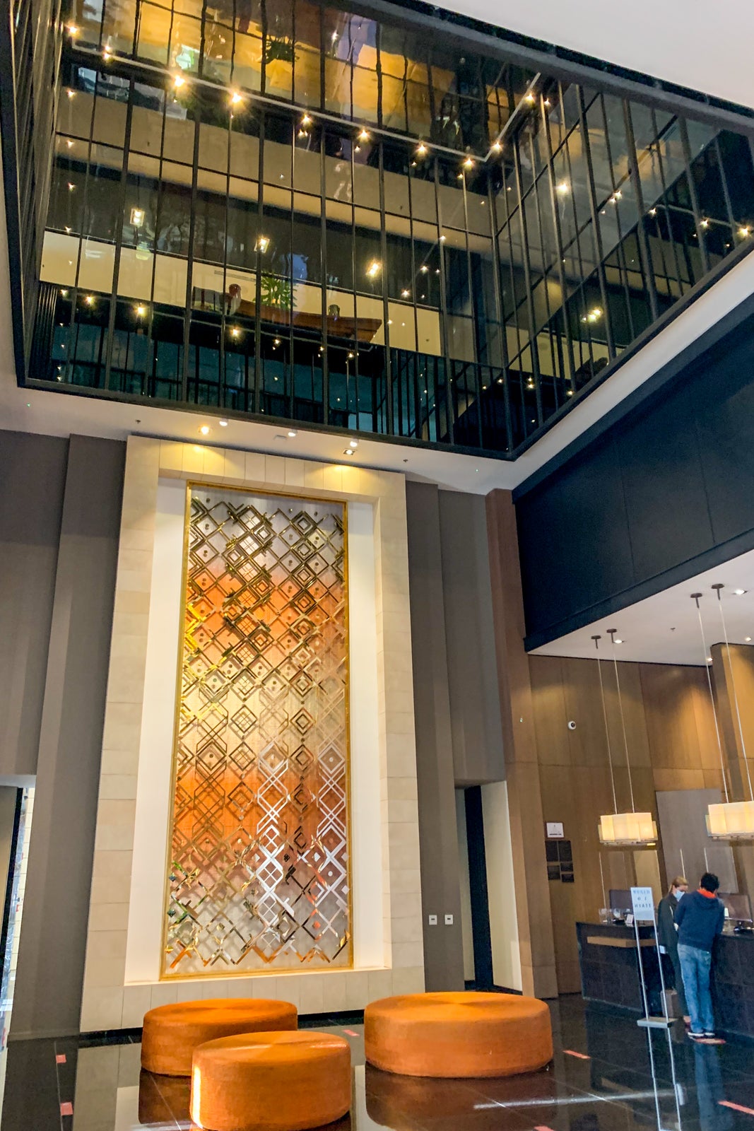 After walking through the entry, I was immediately awestruck by the lobby, which features incredibly high ceilings and lots of public spaces. Light pours in from the wall-to-wall windows, and bold pops of color greet you around every corner.