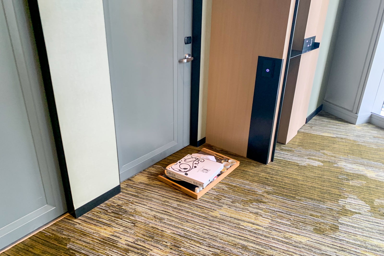 My food order for dinner one night was correct and came quickly. However, the next morning, I found the tray full of dirty dishes still sitting in the hall by my door despite informing the hotel that it was ready to pick up. Luckily, I didn’t step on it as I was exiting my room.