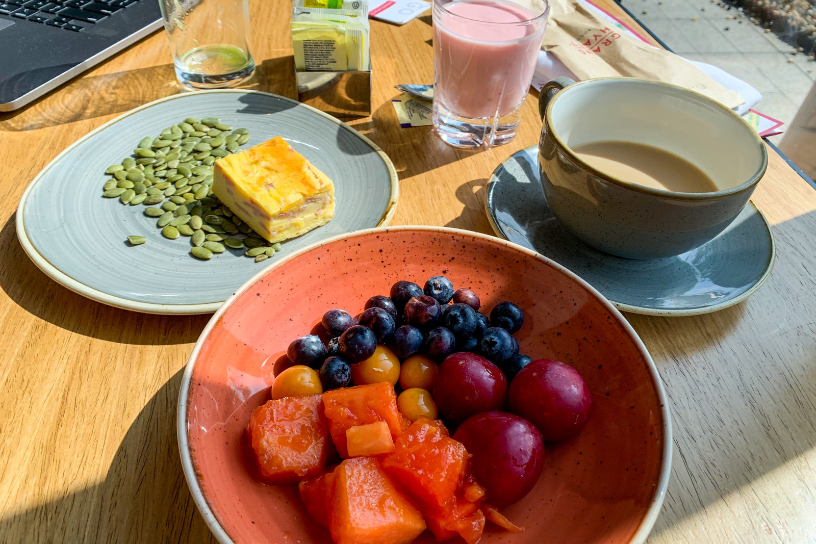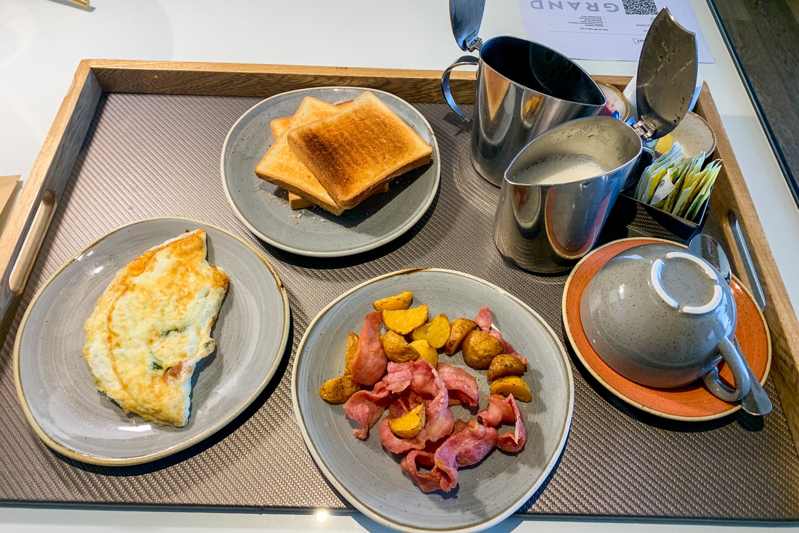 Instead of eating breakfast in the property’s club lounge or lobby restaurant the first day of my stay, I decided to keep working and order room service, which the hotel confirmed I could do as a Globalist member before calling back to take my order. The room service fare was serviceable but nothing extraordinary.