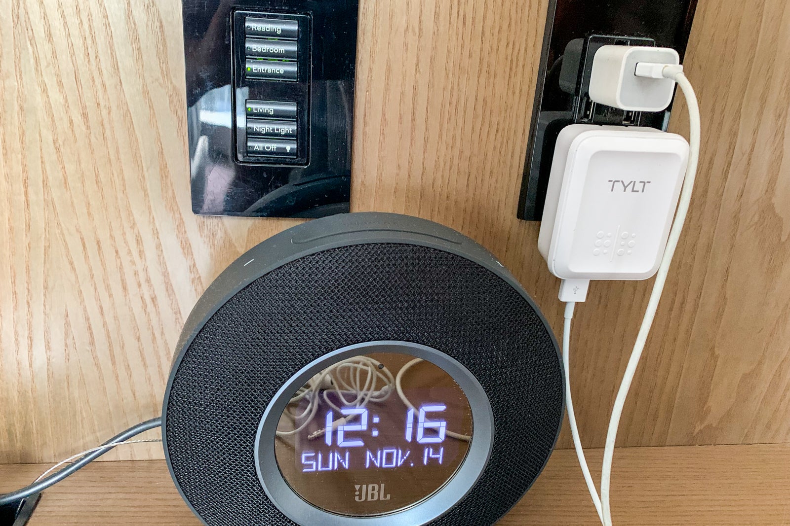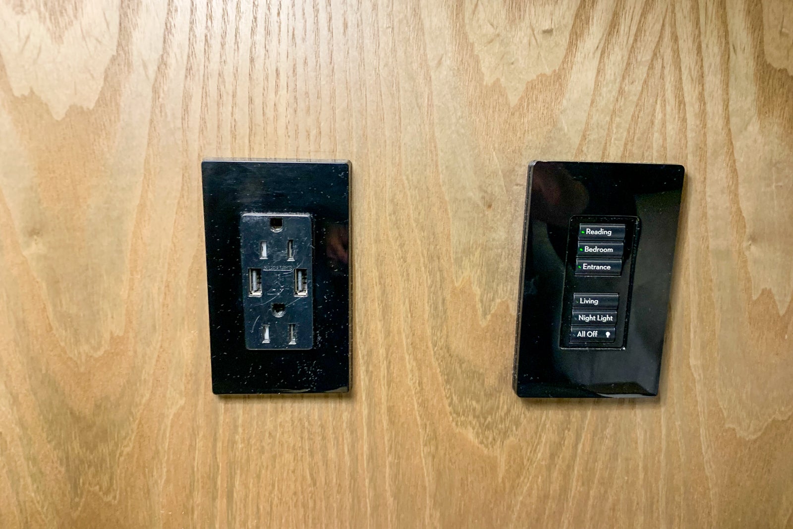 With so much natural light, I rarely found myself needing to turn on lights during the day, but there were multiple lamps available when it was dark. There were numerous places to plug in my various devices, too. A wing chair with an ottoman was positioned in the corner.