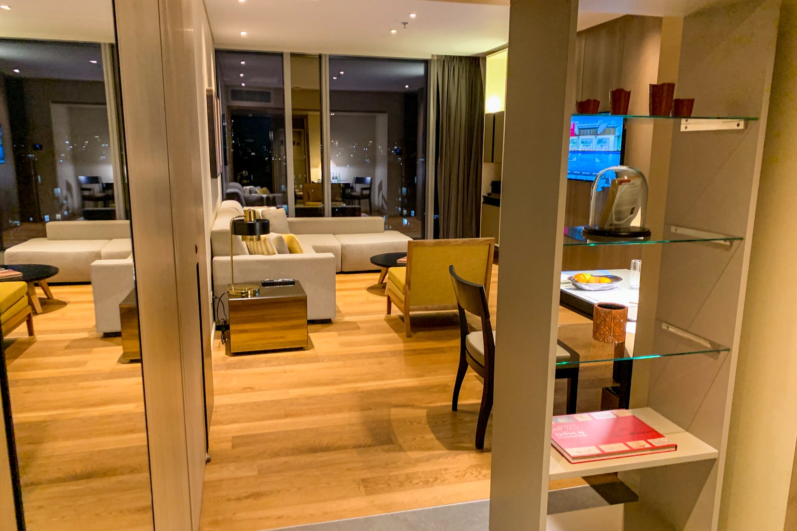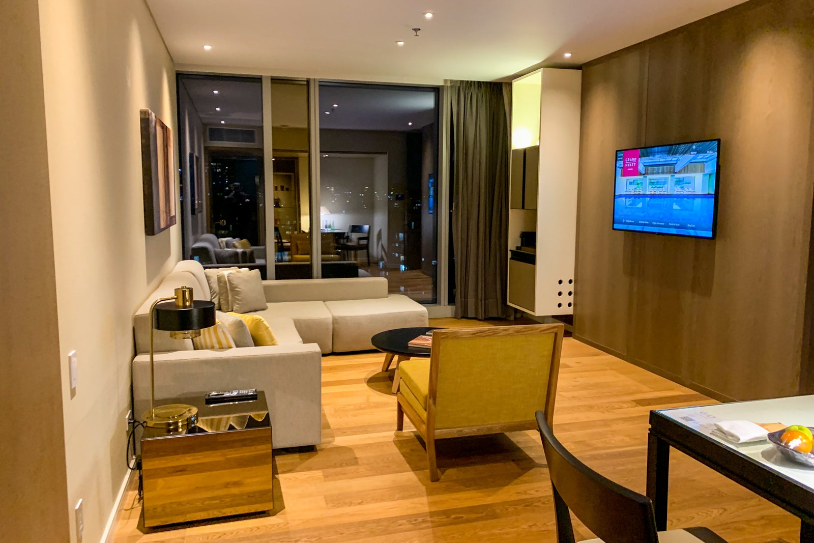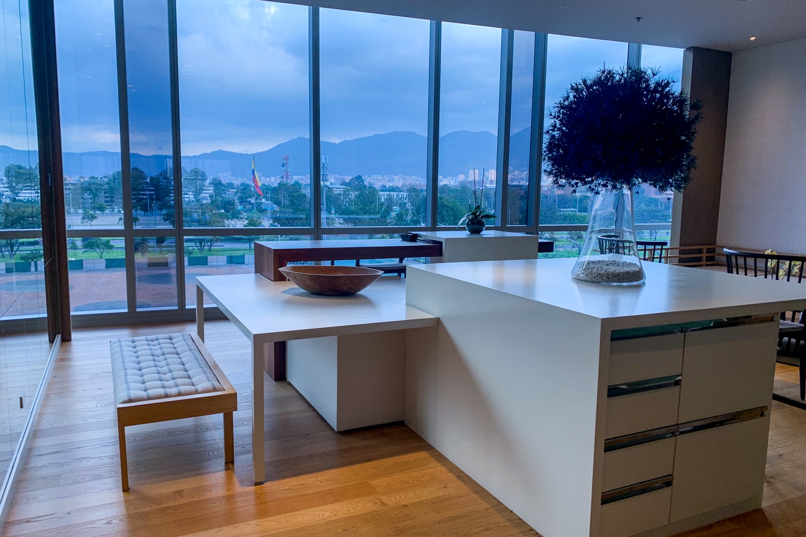 Although it was dark outside when I settled in, I could tell right away I was in for a treat in this suite. The massive living room featured sweeping views of Bogota from floor-to-ceiling windows.