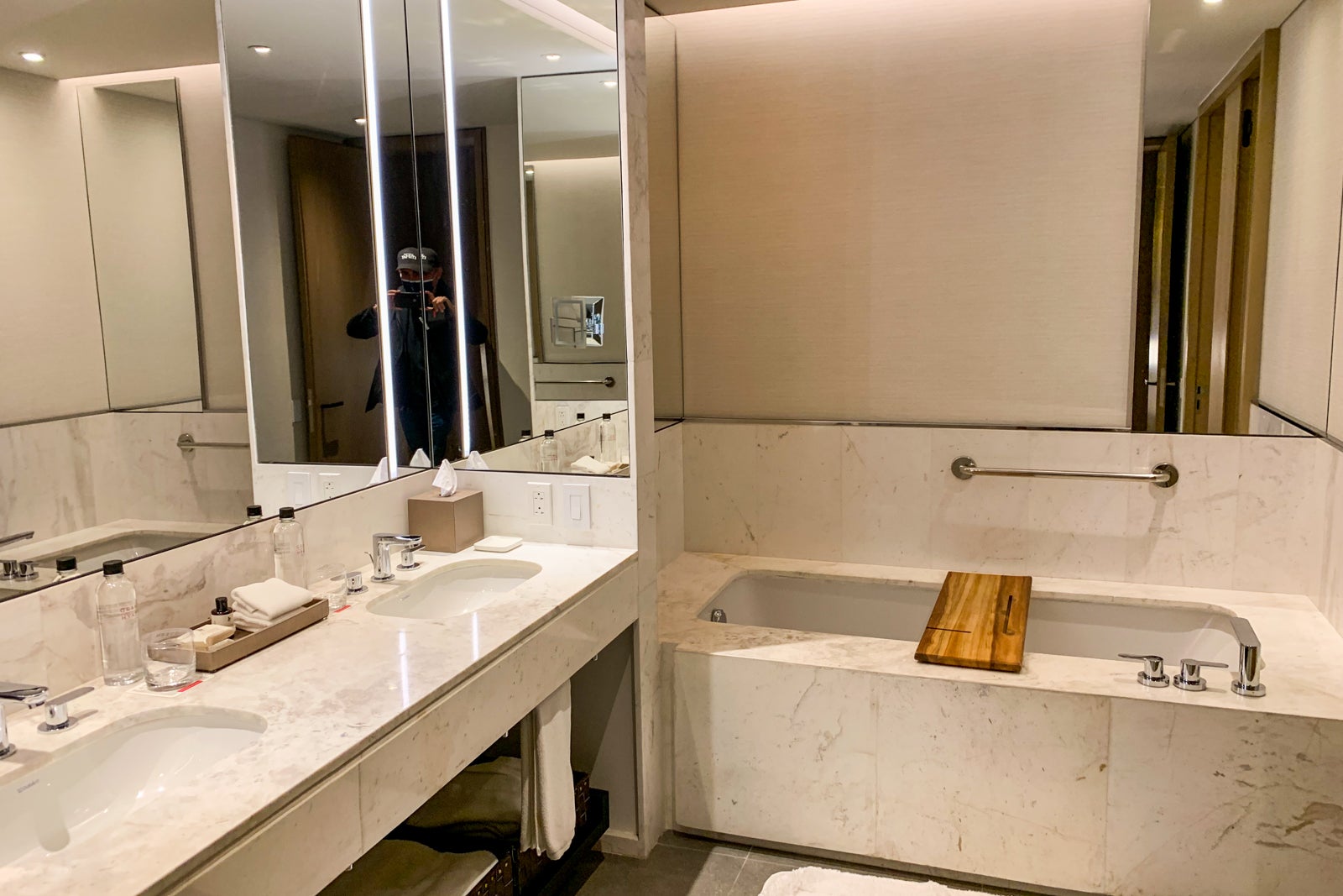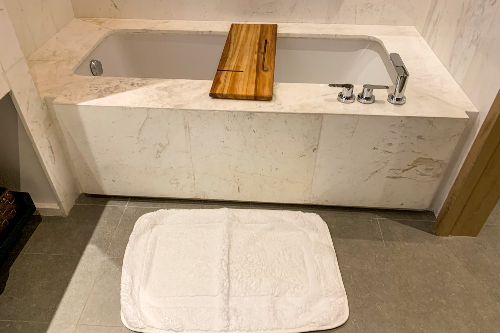 Like the living room and bedroom, the bathroom was amazing. Its layout was well thought out, offering ample space for a walk-in shower, a dual vanity, a marble bathtub and a toilet in its own walled-off area. Water pressure was excellent, and high-end bathroom amenities from Colombian-brand Loto del Sur were provided.