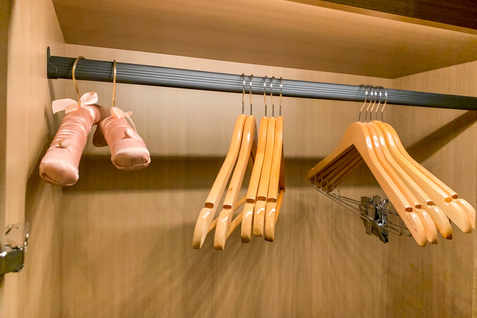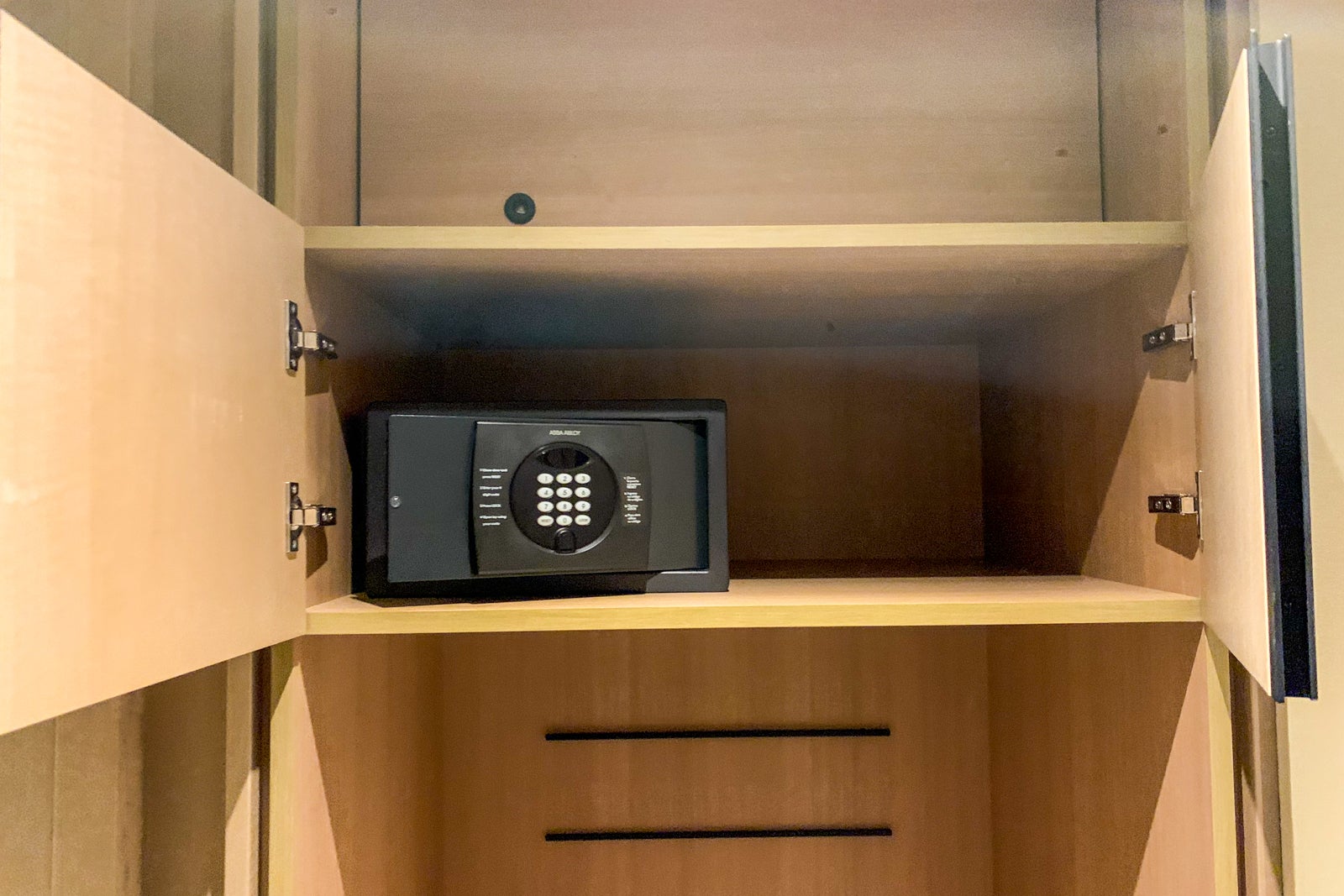 The walk-in closet was enormous, providing plenty of room to store items. It also came equipped with everything I could need for a productive stay, including extra linens, an iron and ironing board, a safe and more.
