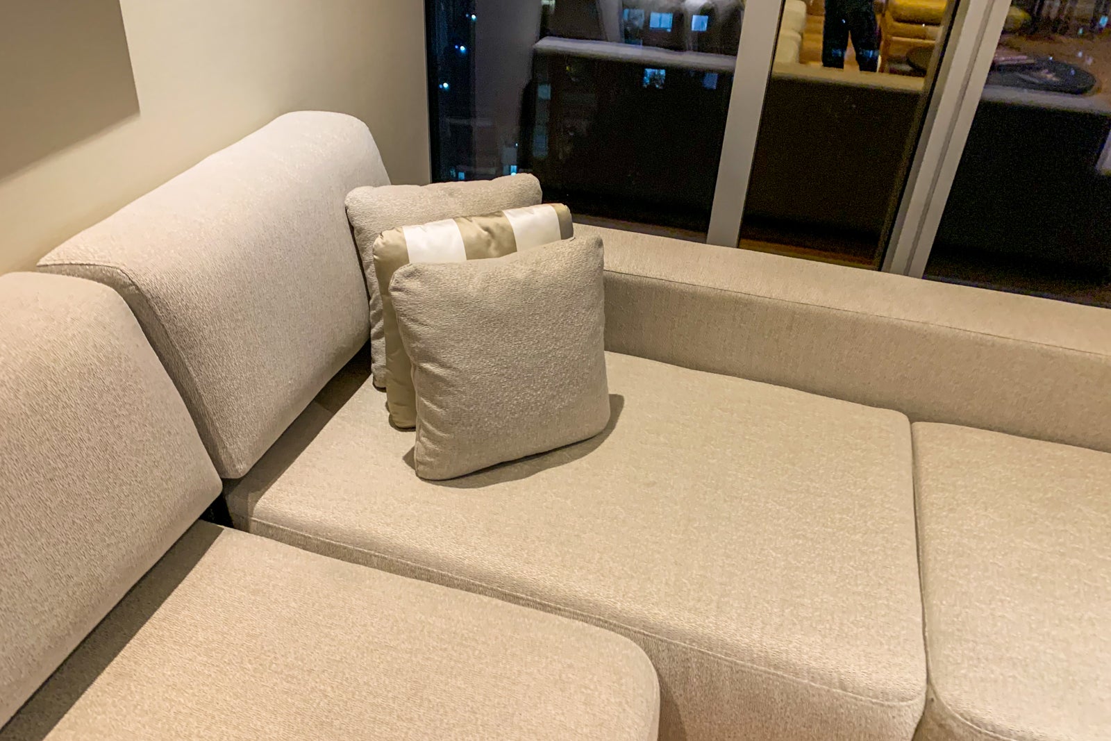 There was a huge (and comfortable) L-shaped couch, plus an area with a desk and two chairs — the perfect spot for getting some work done remotely.