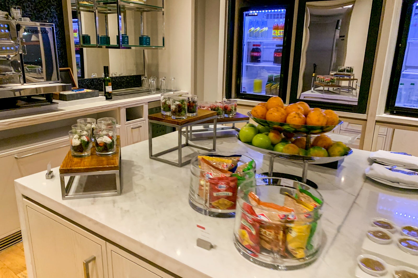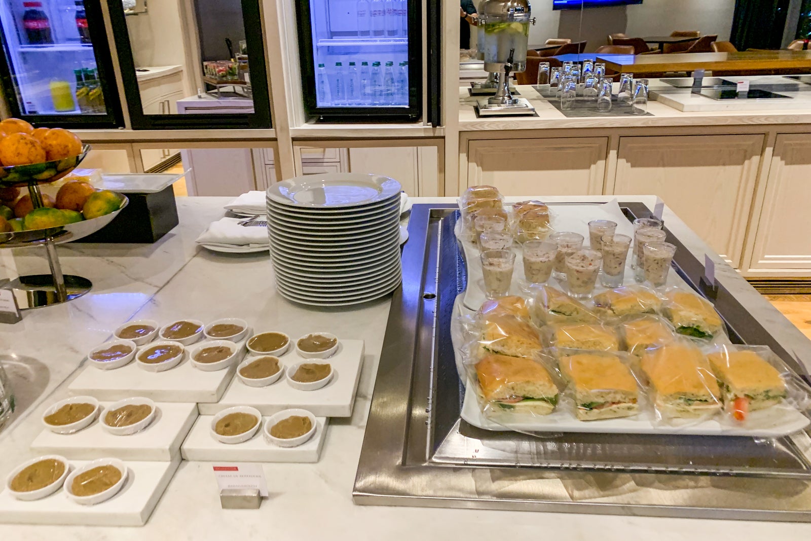 While you won’t be able to eat a full dinner at the club lounge, there were plenty of items to snack on (think: sandwiches, desserts and more) between meals. Breakfast was also available.