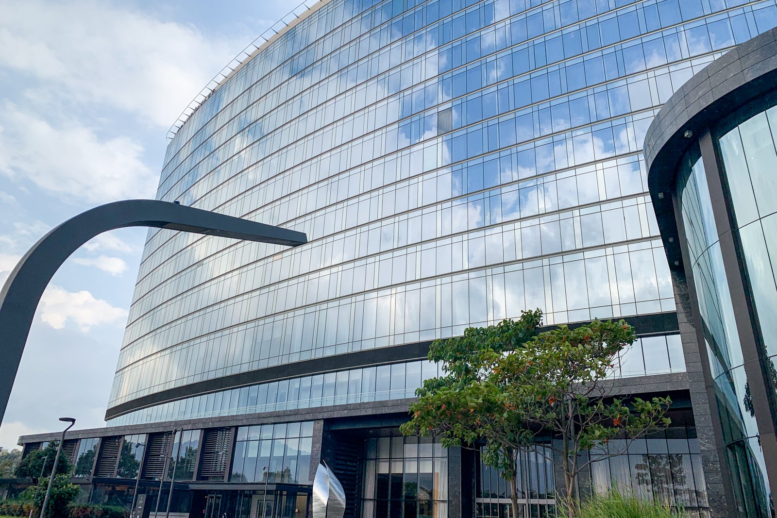 The property is pretty impressive from the outside, as it features a modern facade with clean lines and walls of windows. It’s one of the newer buildings in the area, having just opened in October 2018.