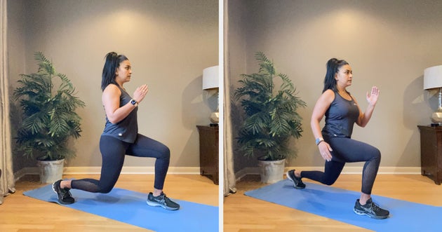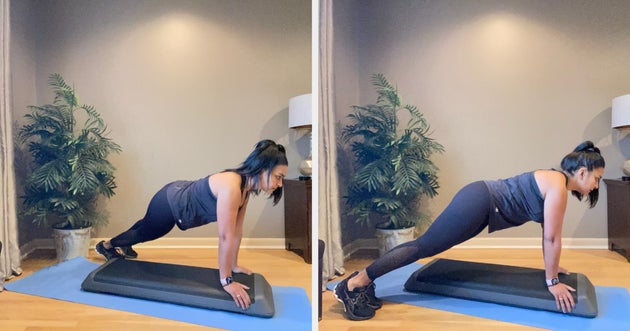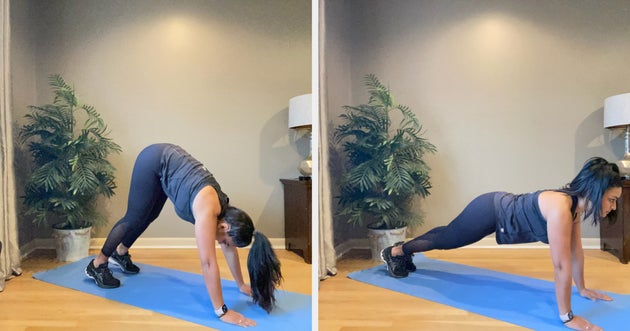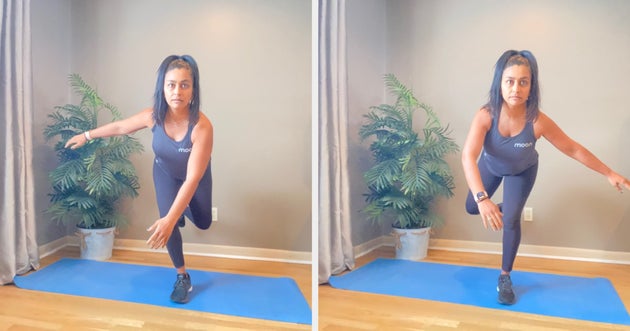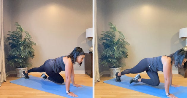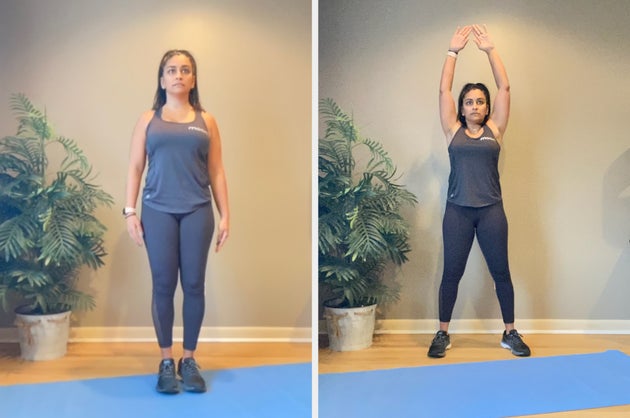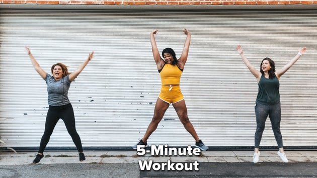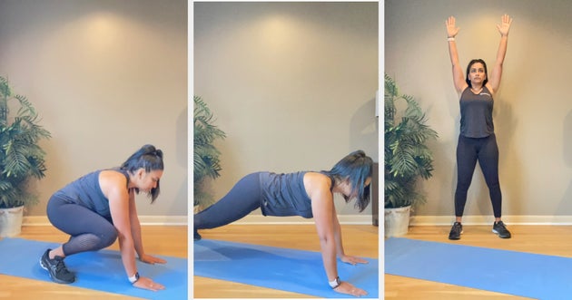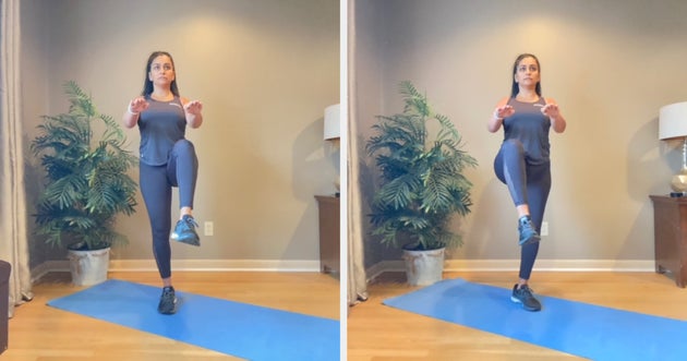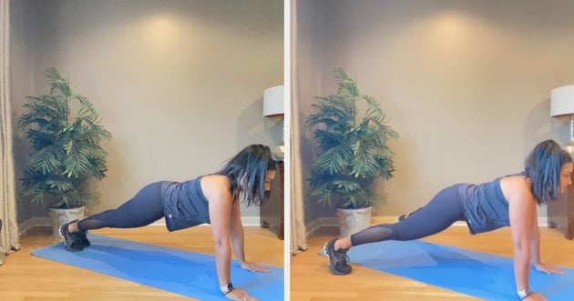 “This five-minute routine is my favourite since it gives cardiovascular benefits, but it works the entire body and especially helps strengthen the core,” she tells HuffPost UK. “There are plenty of modifications available for all fitness levels. It is important to check with a doctor before starting any exercise programme and make modifications appropriate to one’s fitness level.”