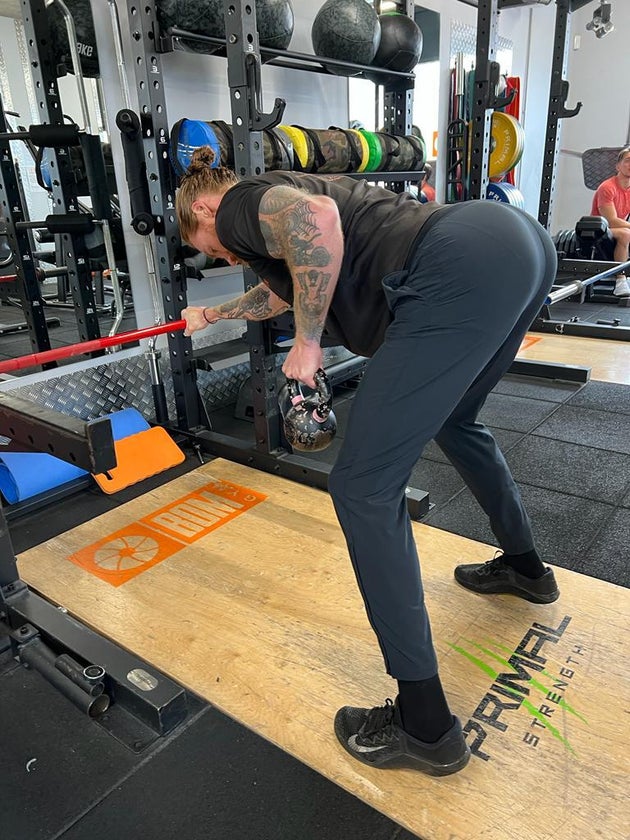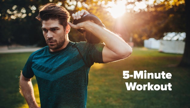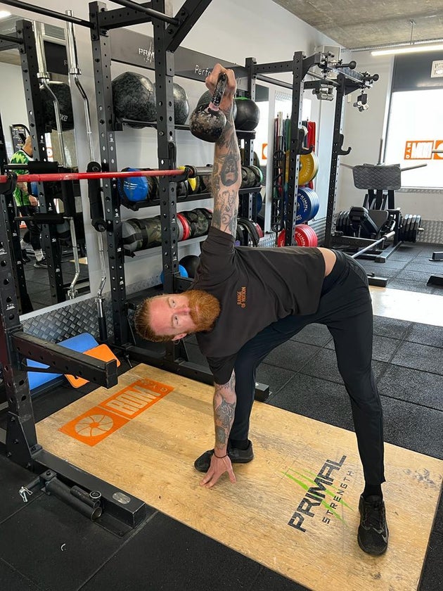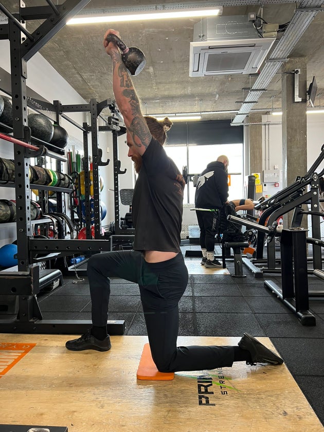 Below, Hyde has shared his favourite kettlebell routine with HuffPost UK. Complete each move for one minute for a fast but effective five-minute workout. Choose a weight that’s right for you. If you’re a newbie, start light.)